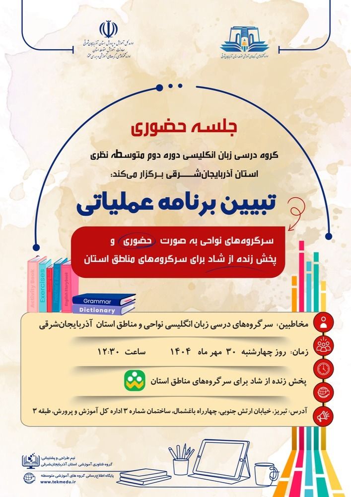 شرکت سرگروههای محترم نواحی پنجگانه در این جلسه بصورت حضوری و سایر عزیزان بصورت مجازی مورد امتنان می باشد. لطفا برای حضور بموقع برنامه ریزی بفرمایید تا در مورد برنامه سالانه گروه و مستندات مورد انتظار سوالی باقی نماند.